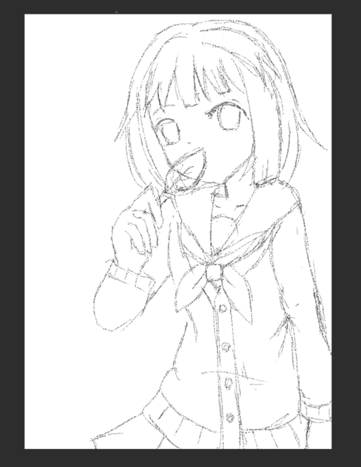 描き途中 髪がいい感じに描けたと思う