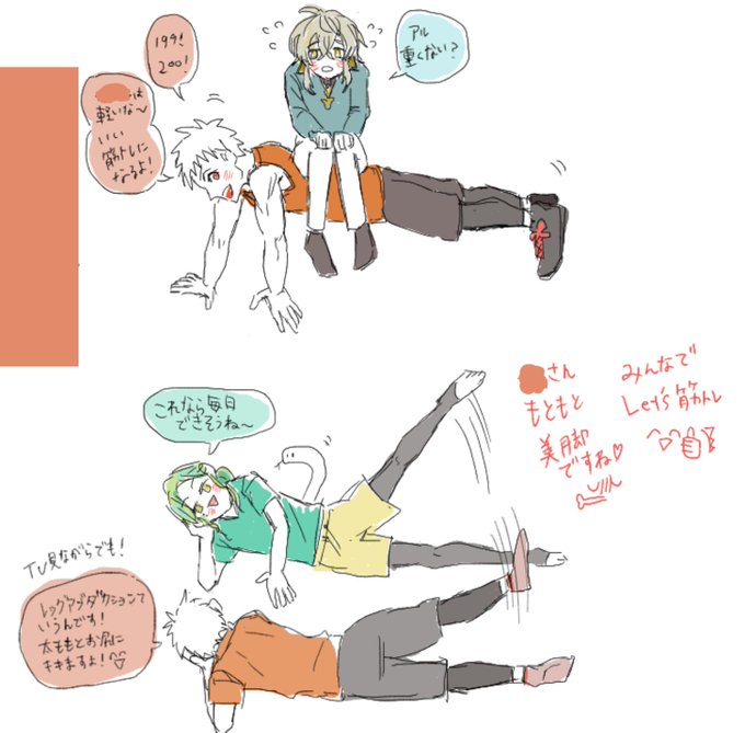 今日の絵チャ 【うちよそ3L・創作】十三星座館の住人たち 交流部屋 ほぼ筋トレ絵になってる!!(`・ω・´)