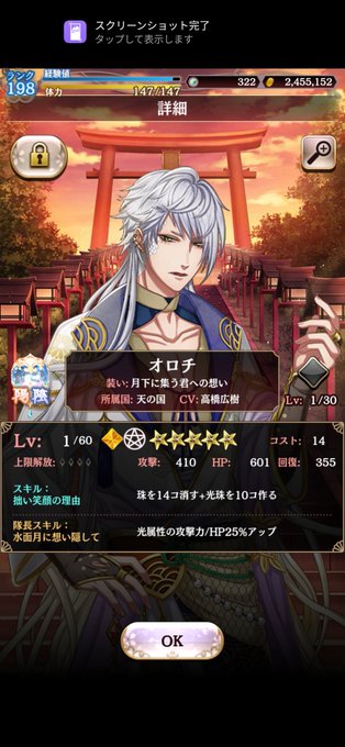 800個程の石と20枚程のチケで!なんとか!ひとり!お迎えでけた!!ので!いつものスクショ祭り(笑)GETするとその興奮のままバシバシスクショ撮るのでひとりしかお迎えしてないのに大量にGETした気分(あくまでも気分)