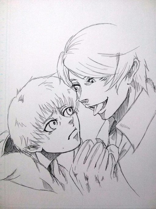 カネキ君と月山さん描いてみました(*^^*) 嫌がるカネキ君w 後は、和服で髪をおろしたウタさんも(^_^) 今は亜門君描いてます♪