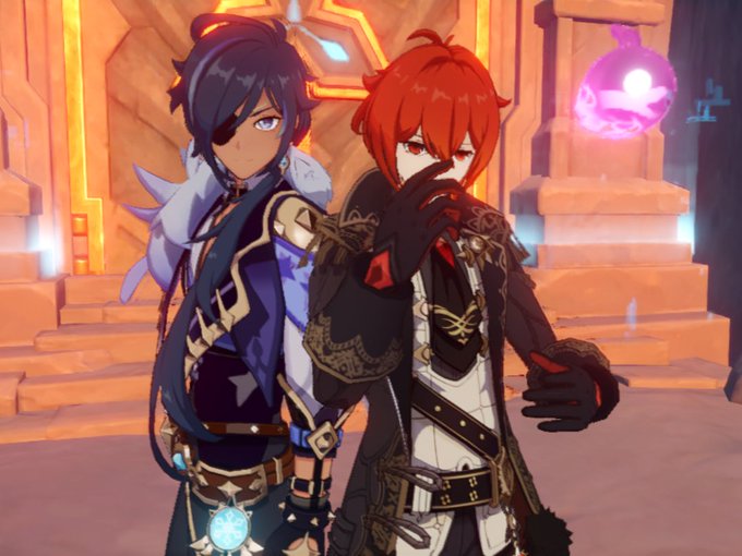 my friend in i spawning in co op. i catch this. (dk what dilucs doing in the second pic but kaeya looks cool lol)