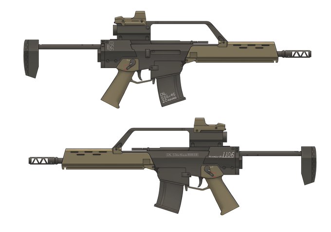 クソ雑マルイ電動ガン差分(正確にはマルイの物はマウントレールとかが無い古い方の量産型に現行型セレクターをつけた物らしいのでリアサイトやコッキングハンドル、セレクター周りの形状が違う)