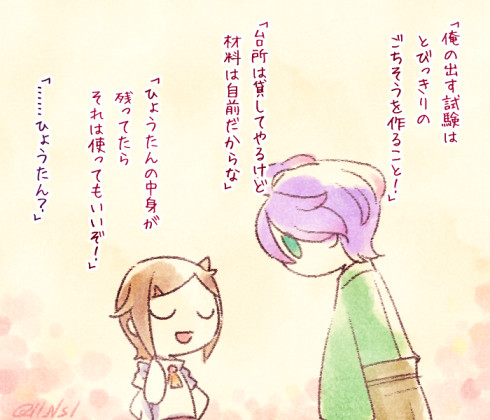 【歌薬昔話パロ 56】 なんか名前がものすごく料理に関係してそうな彼が言い渡す試練とは…? まとめ↓ https://t.co/VHKO8xAMqR