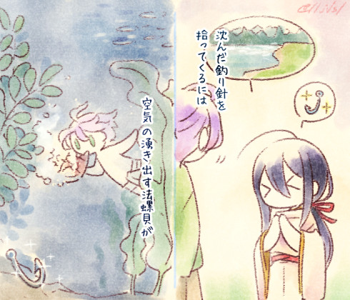 【歌薬昔話パロ 63】 薬研さんの婚礼道具その4:水中呼吸の法螺貝 もはやすでに「兄弟の婚約者にお願いひとつきいてもらうの会」になりつつある まとめ↓ https://t.co/VHKO8xAMqR