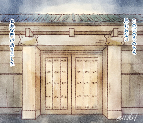 【歌薬昔話パロ 47】 洞窟の奥にこんな門があるとか、ぜったいにあやしい。これは人間のものではありませんよ(`・ω・´)キリッ #最初からそう言ってるだろ! 今までのお話↓ https://t.co/VHKO8xAMqR