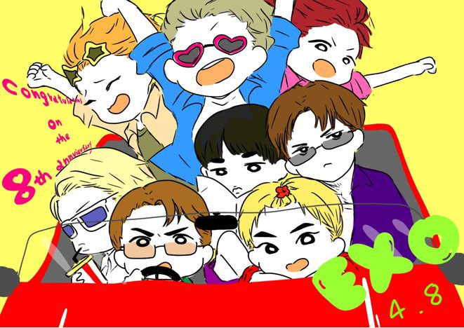 EXOデビュー記念だってぇ♡もっとちゃんと描きたかったけどとりあえずチャニョとシウちゃんとギリ間に合った‥メンバー分ともっとしっかりしたのはまた描くよぉ♡これからも私の笑顔と健康と心にチャージしてください♡♡