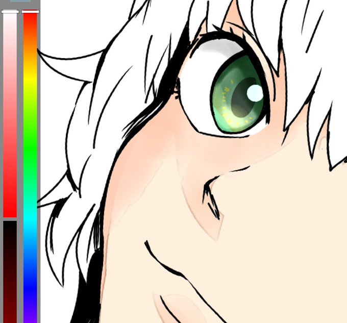 👁。毎回レイヤ少ない。まあまあ大きく描くこんな絵柄のくせに、他の部分がほぼバケツ塗りなので、目だけ塗り込んでもなぁ〜と毎回適当になってしまう。