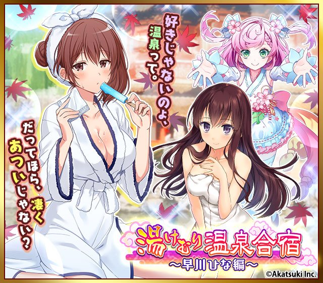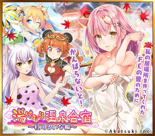 みなさん温泉合宿に行って試合をするみたいです! ……凰稀も温泉行きたいですー…! 本日からイベント「湯けむり温泉合宿-紅司るいな編-」が始まりましたー! 紅司るいなさんの新規温泉衣装ゲットのチャンスですよー! はうあー、るいなさんからそこはかとなく色気を感じます…! #cin11 #シンイレ