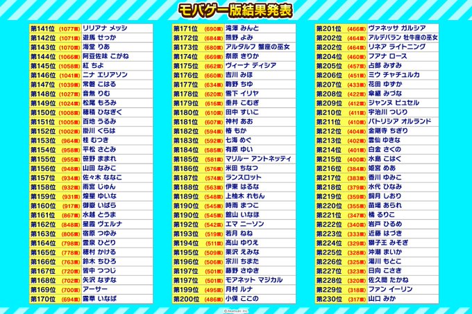 mobage版ありがとう人気投票の結果発表を行います。