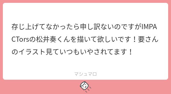 マシュマロありがとうございました🙋🏻♀️😆ゆうぴの主人公感が大好きで、特にワンキスの「約束」って指さして歌ってるゆうぴほんとに好きなんで描いてみました👍✨🤍