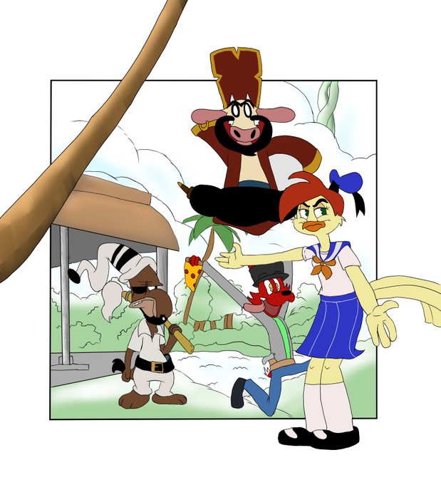 "Moobeard Pirates in a sky island" (a drawing for @TVsKyle. Been a big fan of Moobeard since I first watched it a long time ago. I hope you like it!).