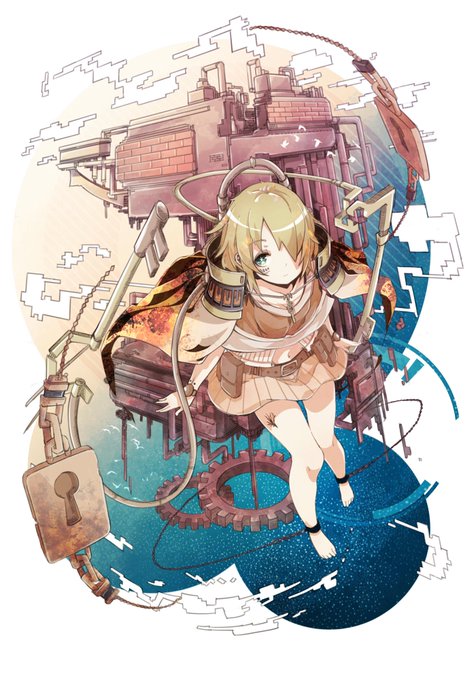 [MUSECA落選供養] クライヴ・ローラ 幼時から「鍵」を背負い、「鍵」を使って空を巡る「鍵渡し」と呼ばれる者の少女。 身体に「二つの鍵」と「南京錠」を背負い、今日も彼女は空を舞う。