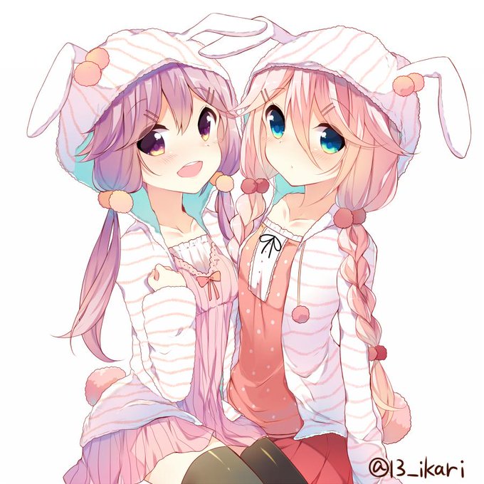 #フォロワーさんの好きな要素を詰め込んだ創作女子を描く できました~!髪型とかの関係で二人です…!リプくれた方ありがとうございました!!(o^O^o)
