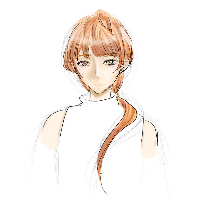 朝の通勤 30分(下絵、線画、肌) 昼休み 30分(髪、目) 色をぼかすと誤魔化しが効くことが分かったが、この路線は目指してない、、! #イラスト #お絵かき #お絵かき練習