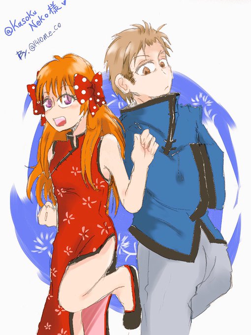 【@KasokuNeko 様】 # いいねした人の画像欄覗いて素敵絵を私の絵柄で描いてもいいですか チャイナ堀千代がかわいくて描かせていただきました!✨(〃ω〃) 色の塗り方とか色々勉強になりました!小さめの2人癒しかわいいですね!笑💖