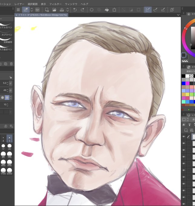 こうして並べてみると以前よりもよりボンド、ジェームズ・ボンドらしい雰囲気の顔面描けるようになったのでは?? …ちなみに4枚目、先程気合い入れて描いたのにこれからお誕生日眼鏡で顔面覆われる予定だよ(笑)