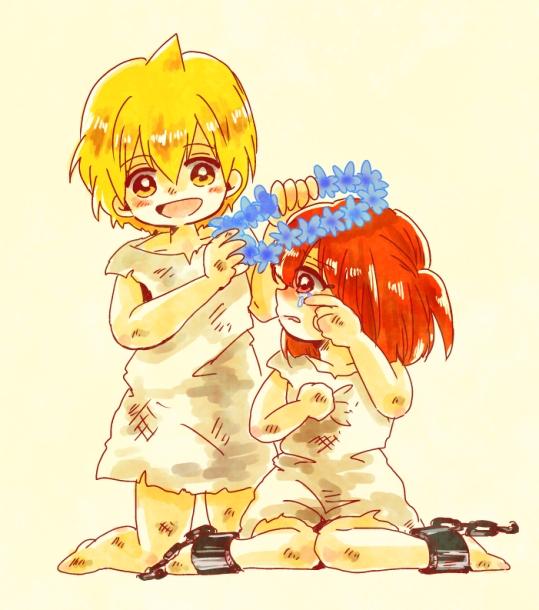 久しぶりに参加します!今夜は「年齢操作」というなんとも美味しいテーマだったので、モルさん小さくしました。+アリババくんです! #マギ版深夜の真剣お絵描き60分一本勝負