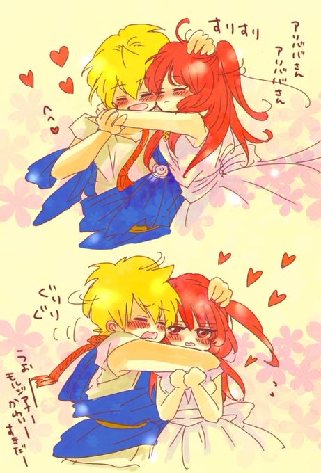 アリモルさんで壁ドン? ロングヘアのモルさんはほんと女ですなと思う。もるもる感より女の子感がとても出てきて、アリババくんとラブストーリーやってほしい。