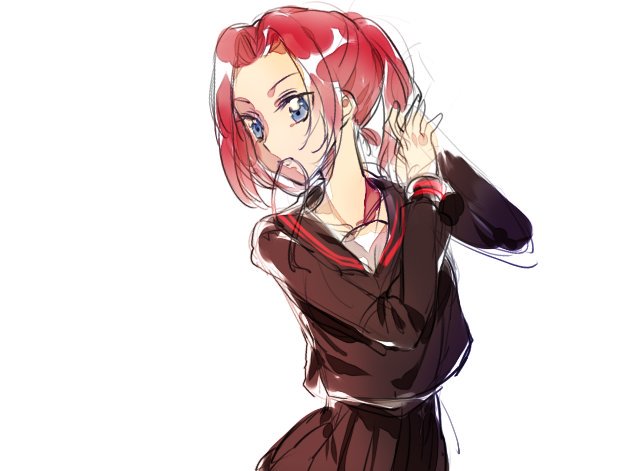 女子高生、紅月かれん みたいな落書きです…セーラー服にポニーテール、好きです。