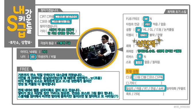 #내스급_트친소 #성현제_최애 트친소 1년에 한번씩 돌리는 듯. 판소는 내스급만 팝니다 그림러/코스어/성인.. TMI많고 알티도 좀 합니다. 흔적 남겨주신 분들 중에 성향 맞는 분들 무멘팔로 찾아갈게요.. 얼티 감사합니다 현제유진/송성 성현제 중심 올라운더 입니다