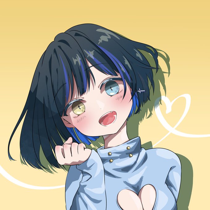 @gr_peee 参加失礼します😳💓 髪型→左(ミディアム)右(ボブ) 髪色→紺系(インナーカラー青) 目→左(黄色)右(青色) 装飾品→ピアス、カッコイイ服が好きです 背景→薄紫 よろしくお願いします🙏✨