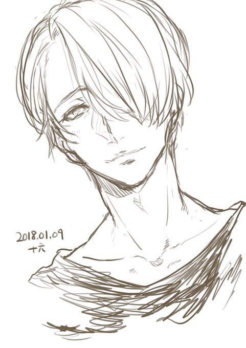 冬に配ったポスカのヴィクトルと、iPad手に入れたので練習に描いたヴィ