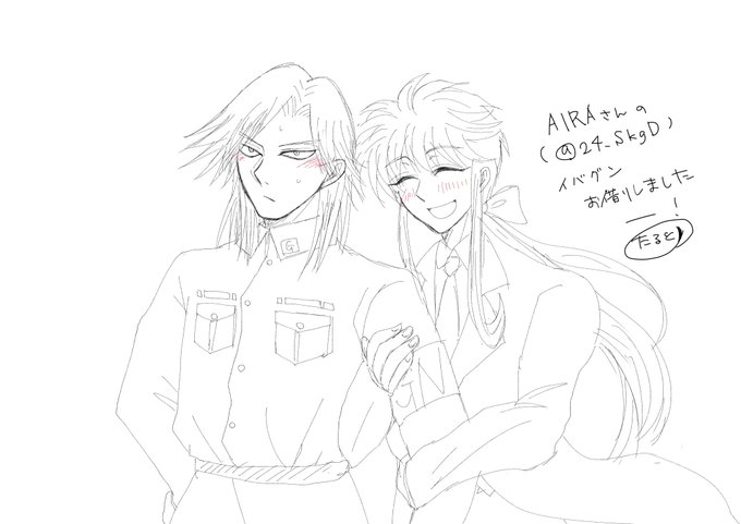 AIRAさん @24_SkgD のアラトリとイバグンを拝借しました!AIRAさんのグン様どれも可愛いので選ぶの大変でしたが自分らしくカプ絵の落書きで落ち着きました。
