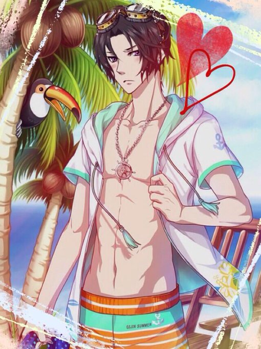 水着ガチャ嬉しい٩(●˙▿˙●)۶装飾が無いので加工でごまかす笑 なぎ「……俺のこと見過ぎなんだよ!!///」