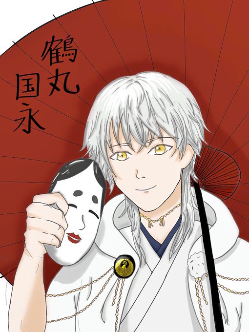 初参加大遅刻失礼します!【お面、番傘 】節分面です(^^)#鶴丸国永版お絵描き60分一本勝負