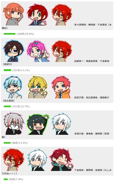 コンビ・トリオのTOP10がこんな感じ。エキシビ含め好きなエピソードや話数・セリフやイラストなど覚えてコメントくださる方がいらして嬉しいです😊