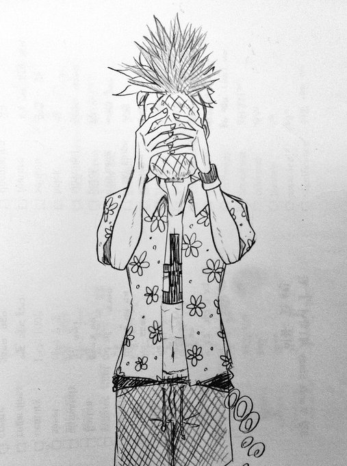나도 없는 5년 전 내 그림을 전달받아서 가볍게 다시 그려봤다😂😂 마르코+파인애플 꾸준히 좋아하네
