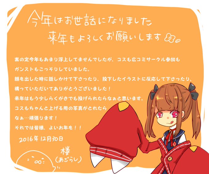 お絵かきする時間がとれないと思うのでもうご挨拶しておきます。