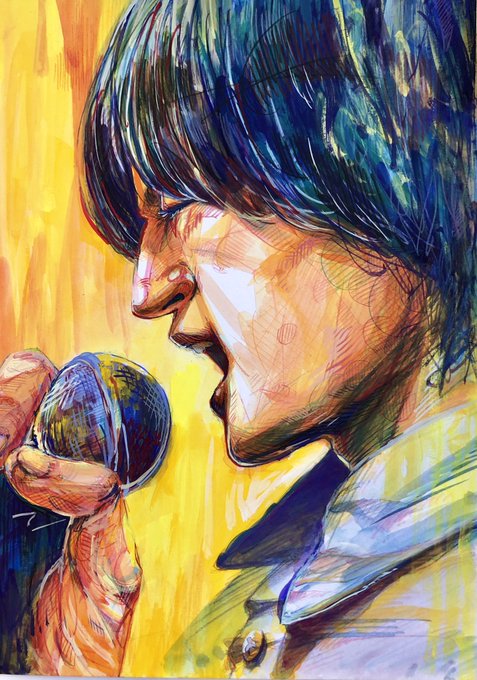 アクリルガッシュと色鉛筆で稲葉さん描きました。 サイズはA4です。 いつかの会報誌の表紙から描きました! #稲葉浩志 #bz