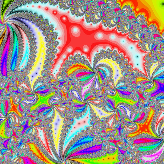 #fractal #フラクタル ((z^2+c-1)/(2z+c-2))^2のマンデルブロ集合をMagnet fractalという。c(1/z-1/(z-2))とかc/(z^2-1)+1みたいな単純な式でも同じ図形になるのに何でこんな定義式が使われ続けているんだろうかと思ったら、元は磁性関連の研究に由来する式らしい。 https://t.co/7SQWdzgQAa