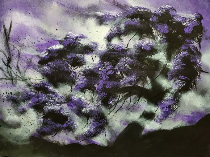 #art #painting #paintingoftheday #gouache #gouachepainting #purple #forest #landscape