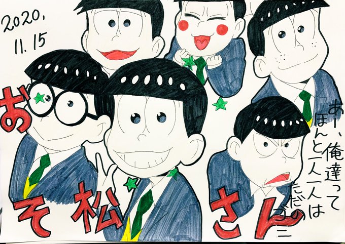イラスト描き。 「おそ松さん」6つ子達を詰め込み。 色もつけてみました! アニメ毎週楽しみです。 #イラスト #模写 #おそ松さん #おそ松さん3期 #絵描き