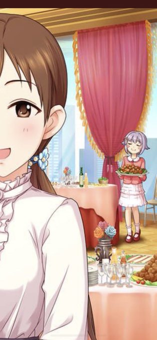 端役で写り込んでるからって侮ることなかれ、この輿水幸子プロはすごいよ。 何がすごいって、目つぶった笑顔だからね。 幸子は基本目を開けて、狙って笑顔を作るタイプの子だからね。 本当に楽しいときじゃないとこの顔にならないんですよ。 あー、嬉しい。