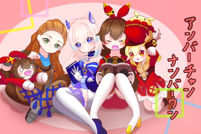 #画鍵 配信でよく見るアンバーちゃんメイン火力パーティを描きました。動画いつも助かってます。これからも頑張ってください