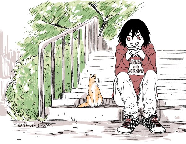 らくがき 中学生の切島くん、目つきの悪い猫に出会う