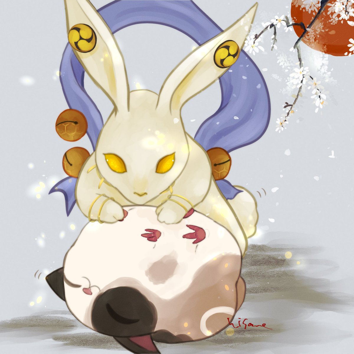 描き始め 干支にちなんですねこを転がす玉兎ちゃんです #仁王2