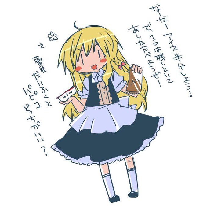 魔理沙とアイスはんぶんこしたい そんで食べ終わった後にやっぱもう一種類のほうも味が気になるとか言って結局両方とも食べる魔理沙にニコニコしたい