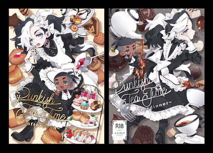 kbnzメイドアンソロの表紙担当させてもらいました~!!🥳 並べるとこんな感じです✊ アンソロ告知アカウント⇒@PunkishTeaTime