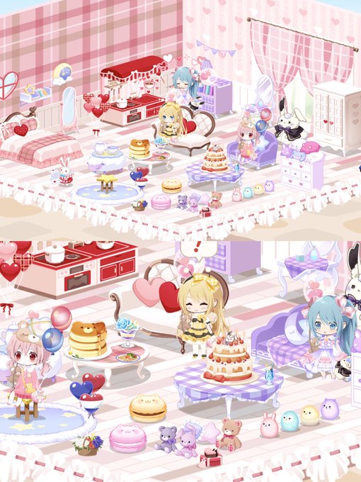 ゆきりんのおうちも可愛い⛄️お洋服もお洒落👒👗どっちの部屋もケーキ飾るん似合うね( ˶ˊᵕˋ)🏠ほんでLv77ごいす👏😳