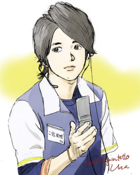 しやがれ披露の夏疾風 二宮さんの手の振りが最高に好き(#^^#) 風に乱れるサラふわの髪もめっちゃイイ♪ #嵐イラスト #二宮和也 #夏疾風