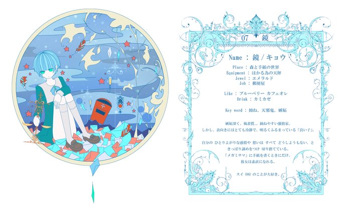 自分の最初の創作世界「#不思議不可視疑」の人物達は、時計の「12」までの数字を与えられ(けつばん有)、それぞれ「極端な象徴」として生まれました。