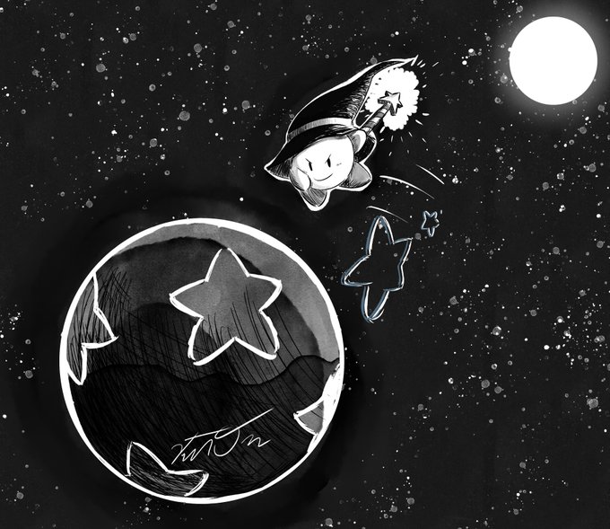 Day 4 of #Inktober and I drew #Kirby fighting phase one of Nightmare from "Kirby's Adventure/Nightmare in Dreamland" I always like how Kirby's power up icon in Adventure had a witch hat for the star rod (never used in game), Really love this series. #Inktober2018 #art #fanart