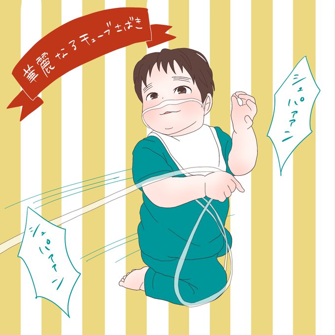 職人の手つきでチューブを振り回して遊んでいます😂 そしてこのお顔である😂✨ #育児絵日記