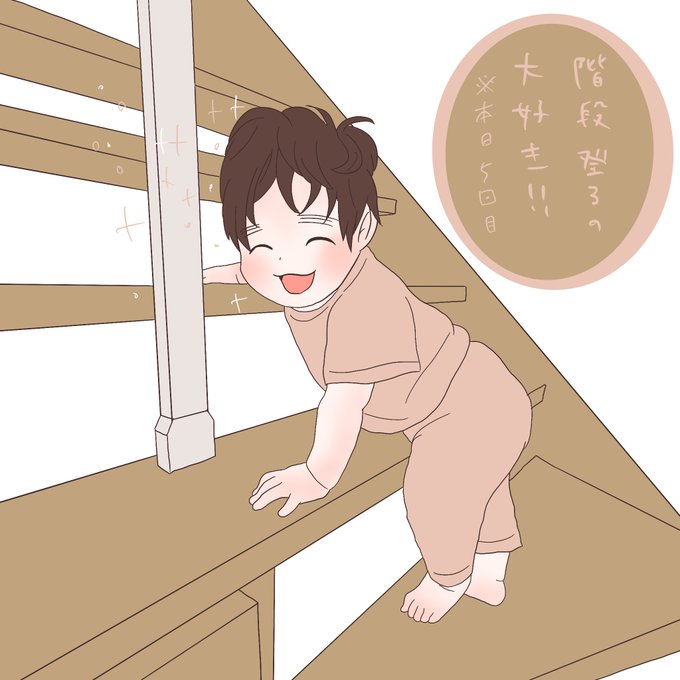みなとくん階段が登れるようになりましたー👏✨ 嬉しくて嬉しくてみんなに何度も手を振りながら登って、登った後は自分で自分に拍手をしています😂✨ #育児絵日記