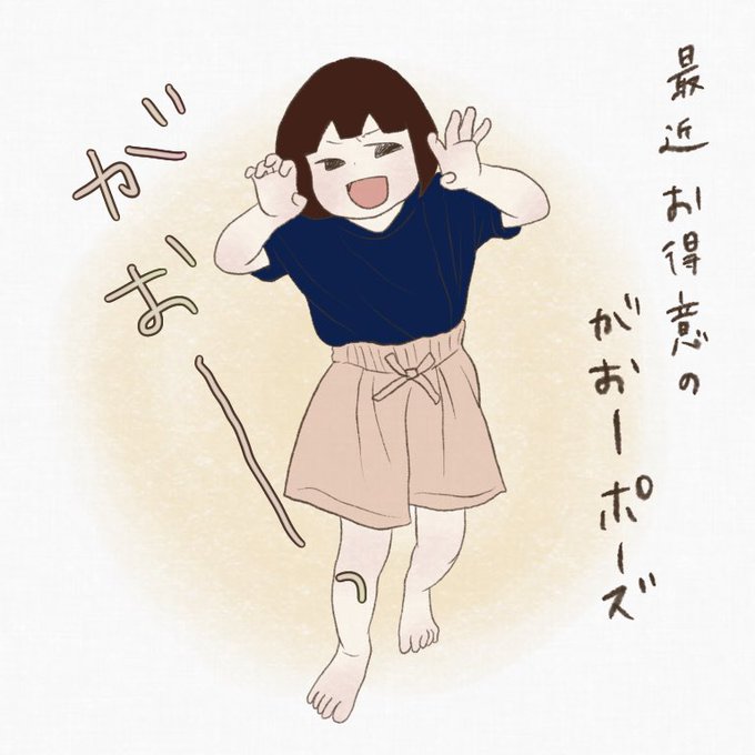 写真撮るよーってするとよくやってくれるポーズ☺️ 子ライオン的な可愛さがある🦁 #育児絵日記
