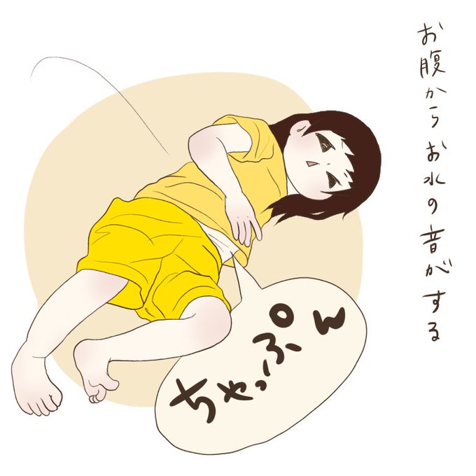 お茶飲み過ぎちゃった後、寝っ転がるとおなかから可愛い音が聞こえてきます☺️ #育児絵日記